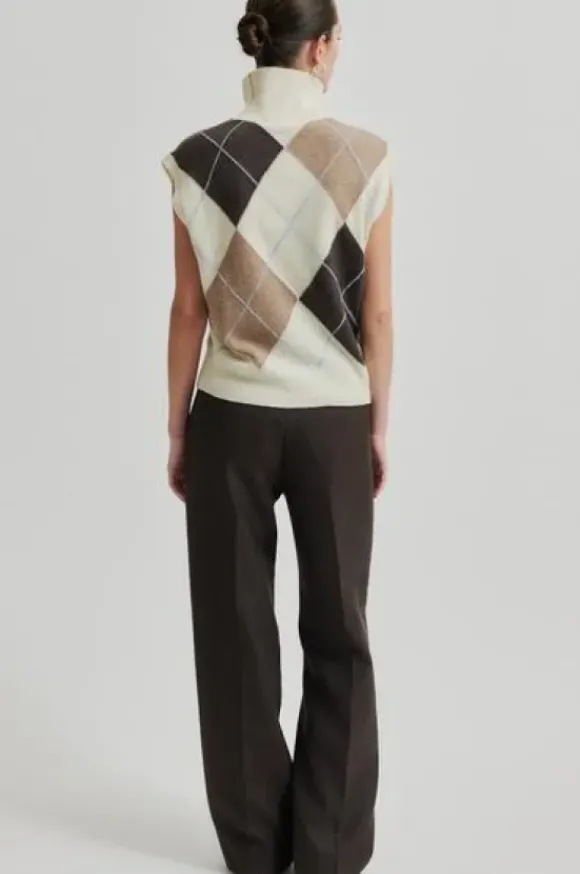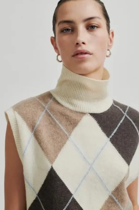 Second Femalen kaunis neuleliivi klassisella salmiakkiruutukuviolla. Poolokaulus. Pidä sellaisenaan hameen tai housujen kanssa tai pue bleiserin alle. Materiaalina villa.