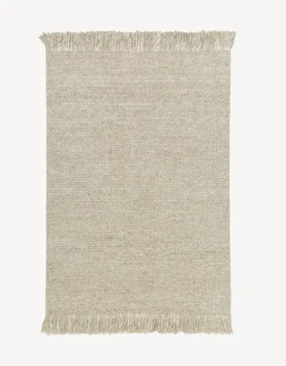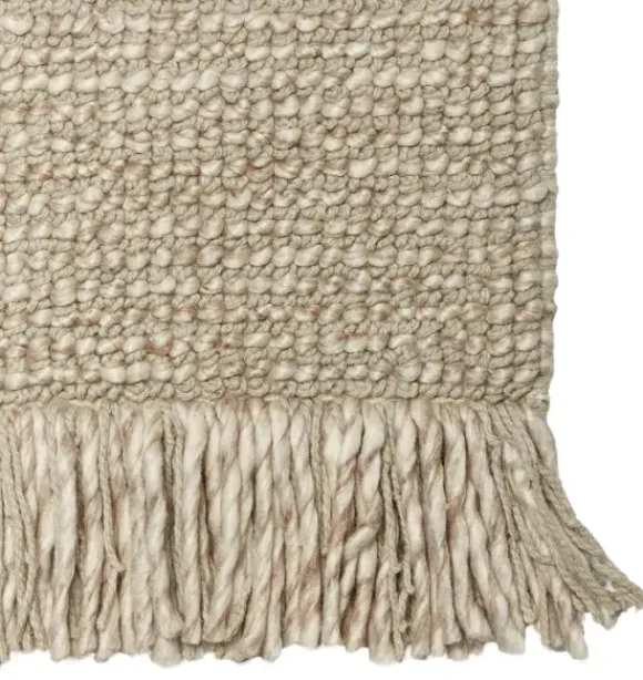 Värjäämättömästä lampaanvillasta valmistettu näyttävä ja persoonaallinen matto, jonka ilme syntyy eri tavoin kierrettyjä lankoja yhdistelemällä. Maton päissä on runsaat hapsut.