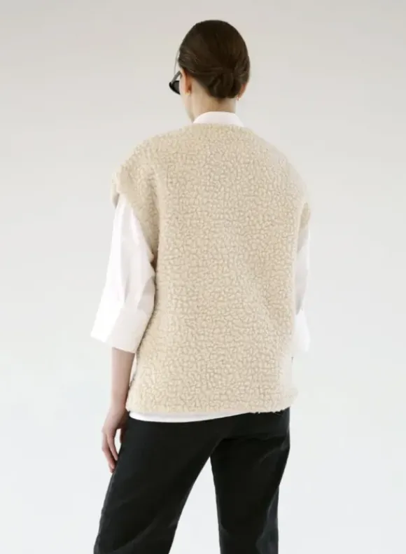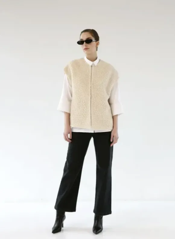 Suoralinjainen Ariana-teddyliivi syksyn ja talven viileneviin keleihin. Pue neulepuseron kanssa ulos tai sisällä viileän hetken lämmittäjänä. Ihana mekkojen päällä!