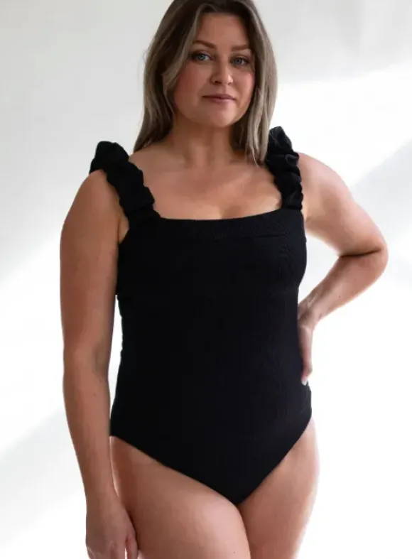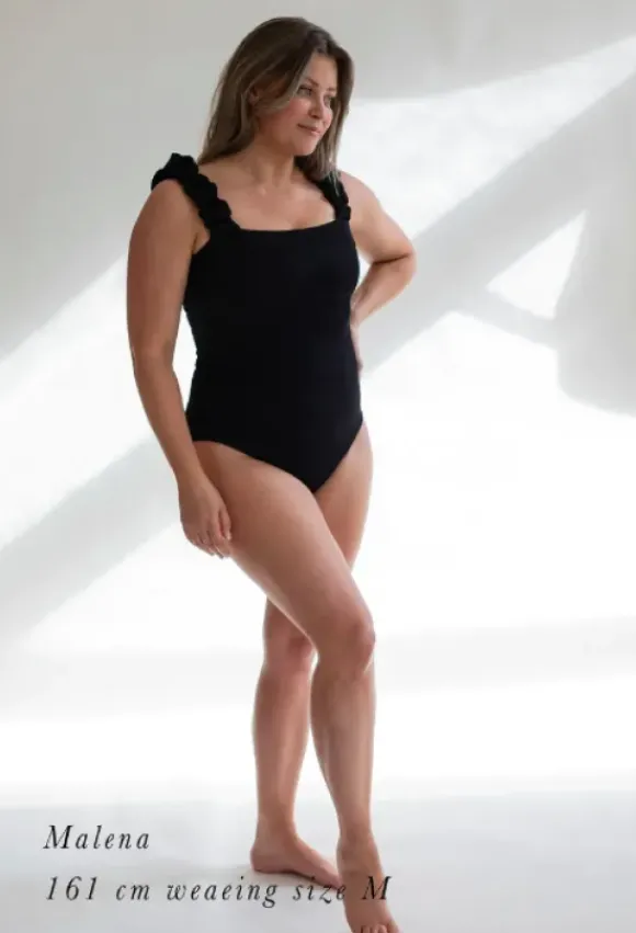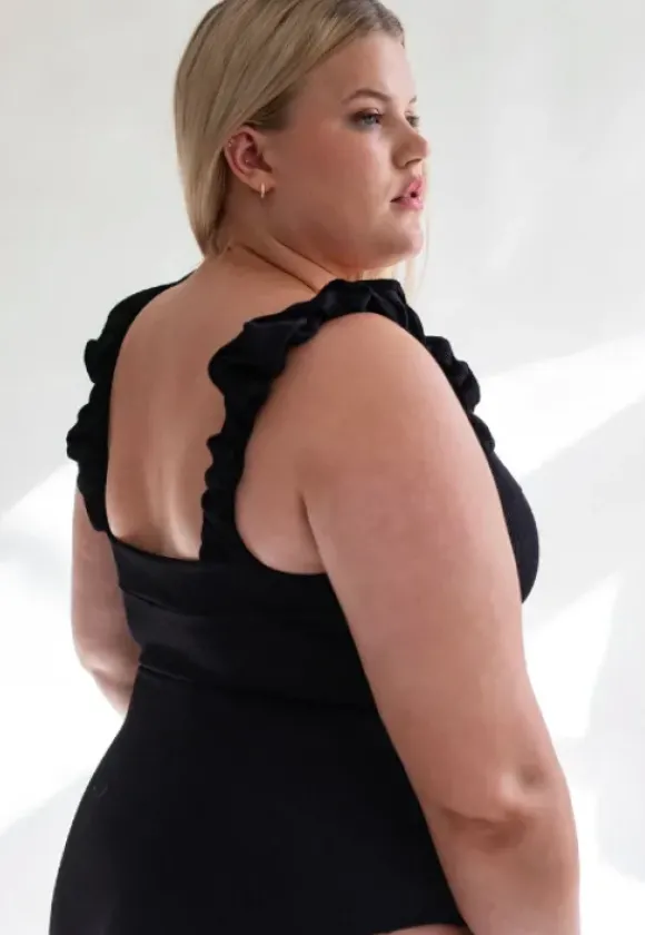 Valmistettu laadukkaasta, premium kankaasta, jossa miellyttävä ja tukeva jousto. Naiselliset röyhelö olkaimet, ajaton siluetti. Pue uimapuku hameen tai shortsien kanssa, ja sinulla on kaunis toppi kaupungille tai kesälounaalle.