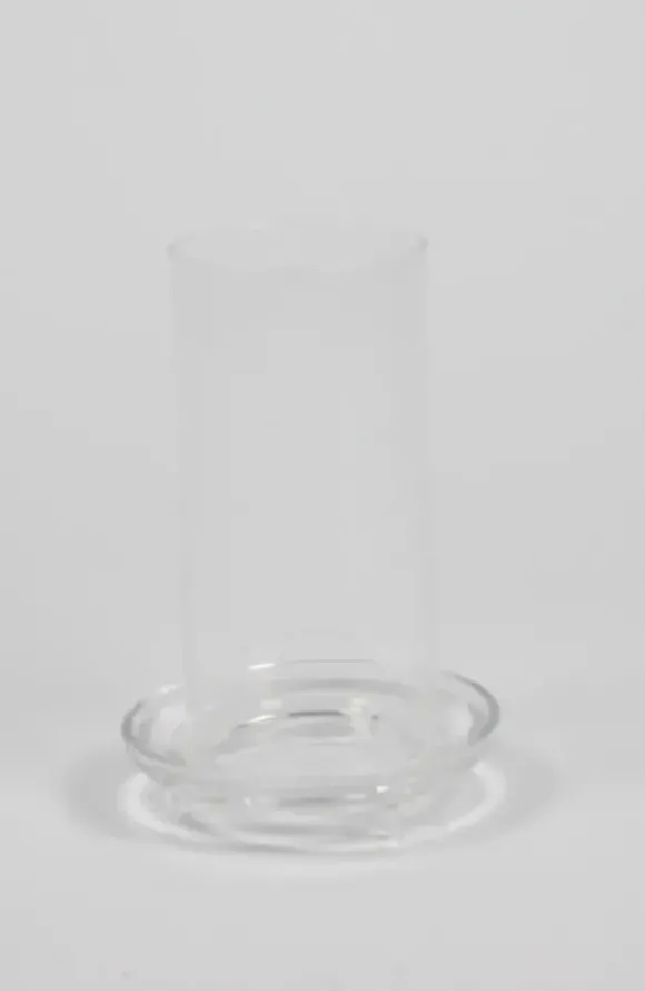 Ajaton lasinen kynttilänjalka pöytäkynttilälle tai tuikulle. Kynttilän suojana sylinterin mallinen nostettava kupu. Kaunis yksinään tai ryhmänä…