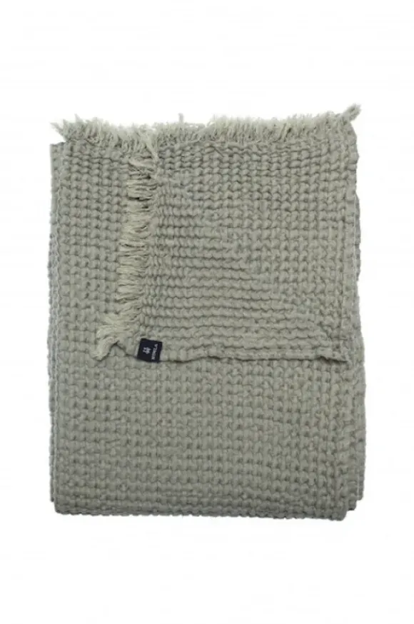 Himlan kaunis Angeline torkkupeitto kauniissa vihreän sävyssä. Materiaalina puuvilla-pellava ja ihana rosoinen pinta tekevät tästä kauniin, luonnollisen yksityiskohdan sisustukseesi. Hapsut lyhemmissä päissä.