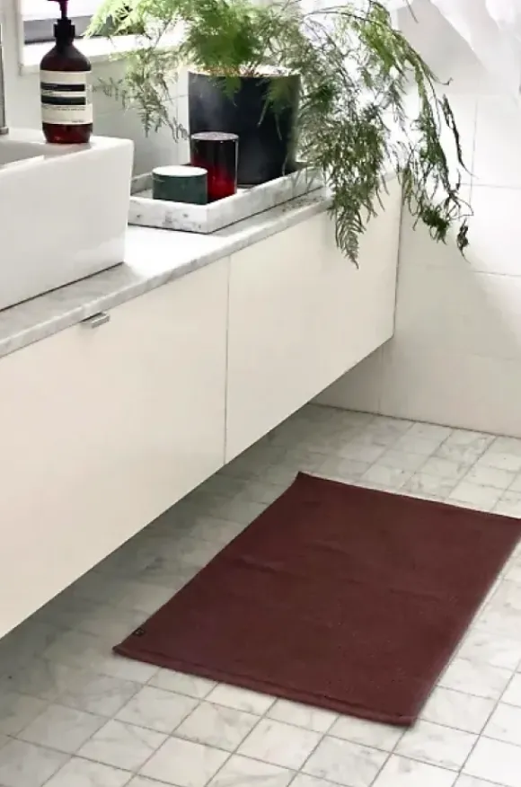 Himlan puuvillainen matto kylpyhuoneeseen. Kiva uusi sävy autumn!