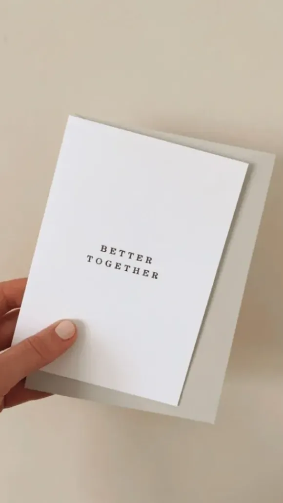 Tämä kortti on ihana erilainen onnitteluviesti kihlaparille, hääparille tai yhteen muuttavalle parille. Better together <3