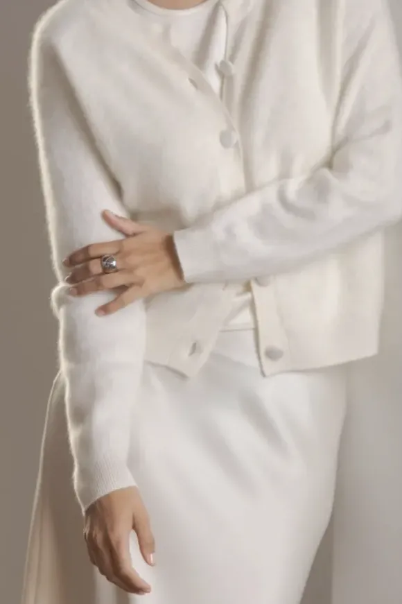 Cashmereneuletakissa on viisi nappia edessä ja pieni V-aukko kauluksessa. Raglanhihojen kaunis istuvuus sekä resorit hihansuissa ja helmassa viimeistelevät ilmeen.