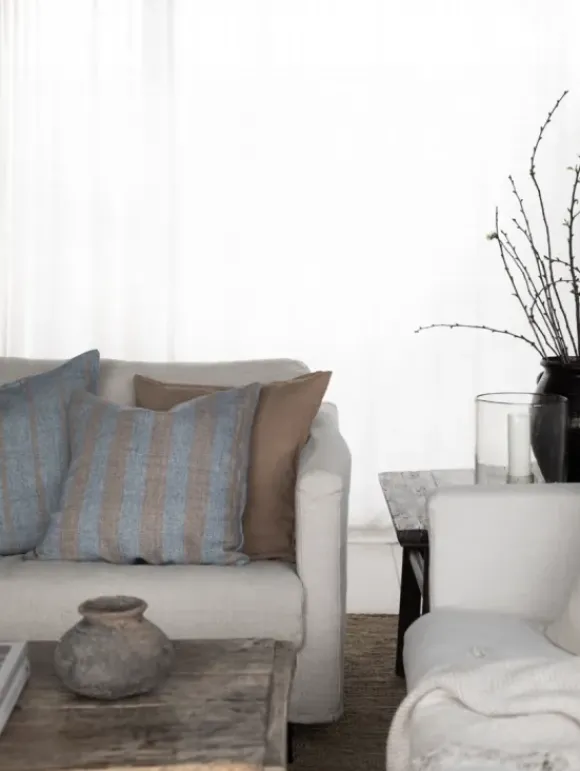 Tell Me Moren kaunis tyynynpäällinen ihanan rosoista pellavaa. Kaunis raitakuosi on helppo yhdistää yksiväristen tyynyjen kanssa. Vetoketjukiinnitys. Eurooppalaista pellavaa.