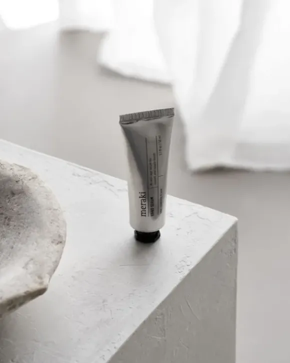 Tanskalaisen Merakin hoitavalla käsiseerumilla saat ihosi lempeästi pehmeäksi. Tämä geelimäinen käsiseerumi sisältää F-vitamiinia ja pehmentäviä ainesosia, kuten shea butteria, betaiinia ja oliiviöljyä. Kurkku viilentää ja hyaluronihappo vähentää ryppyjä.