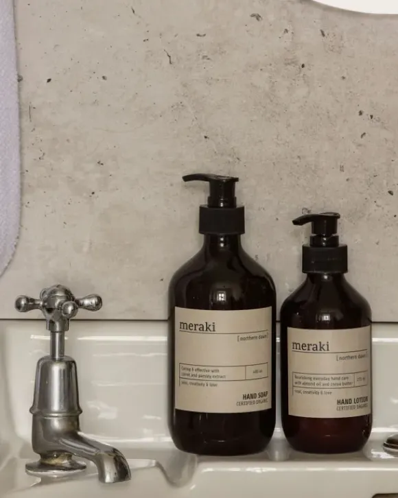 Tanskalaisen Merakin tuotteissa on hienot luonnolliset tuoksut. Tämä pumppupullossa oleva käsivoide hellii kuivia käsiä.