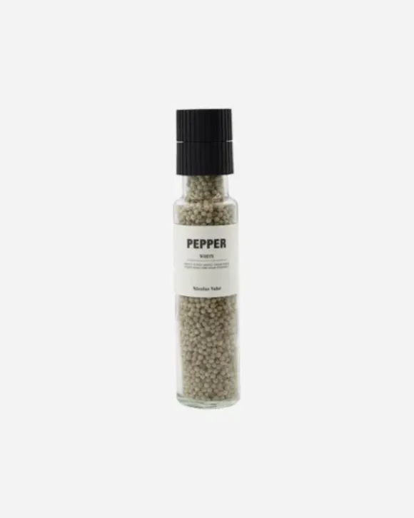 Enjoy the delicious and delicate white pepper from Nicolas Vahé that has a strong, distinctive flavour and a light aroma. Make the most delicious sauces with white pepper, or use it in soups, potato dishes and salad dressings to add extra flavour. The fine and bright peppercorns come in a beautiful and decorative grinder, so you can display it on your dining table or in your kitchen along with other spices. Shelf life after opening: 16 months.