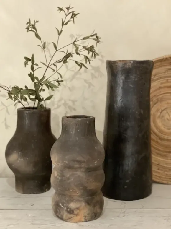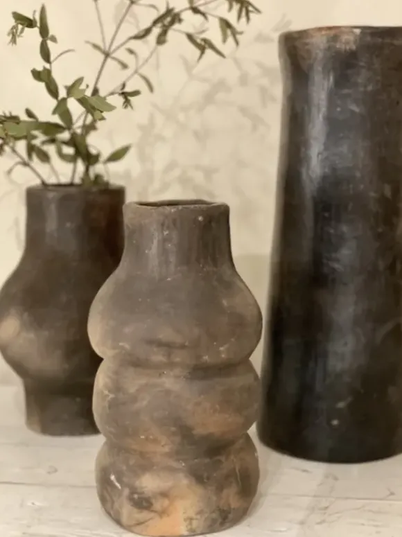Tämä vaasi on valmistettu käsityönä Tunisiassa. Jokainen tuote on yksilö. Ihana vaasi koristeeksi sellaisenaan tai kuivakukille. Ei vettä vaasiin. Mikäli haluat käyttää tuorekukkien kanssa, laita sisälle pienempi lasiastia.