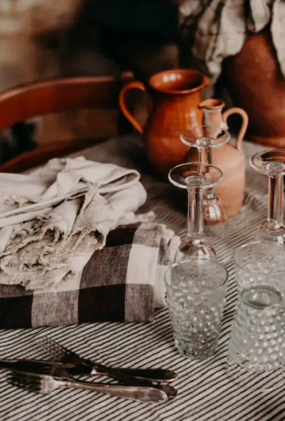 Kaunis pellavainen pöytäliina ihaniin kattaukseen. Koko 150×300.