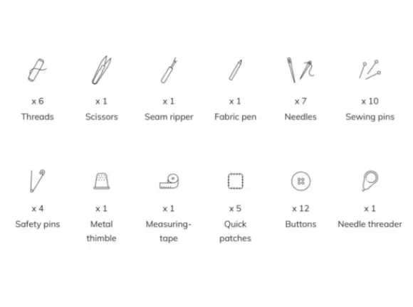 Tämä ompelusarja sisältää kaikki välttämättömät ompeluvälineet ja -tarvikkeet, joita tarvitset vaatteiden korjaamiseen. Jokainen väline on huolellisesti valittu ammattimaisten räätälien suositusten perusteella.