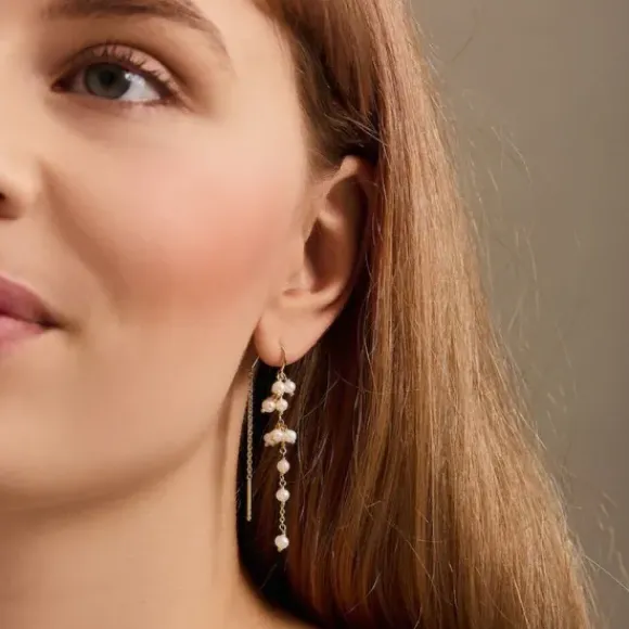 Pernille Corydonin kauniit ketjukorvakorut, joissa koristeena helmiä.