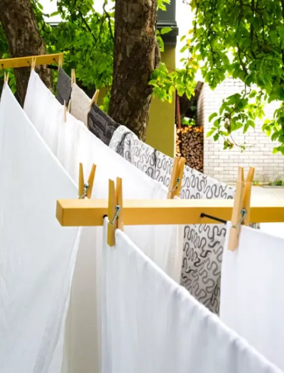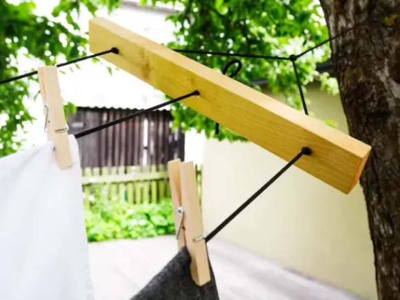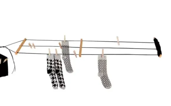 Mukava kätevä pussi, jossa voit säilyttää pyykkinarua ja pyykkipoikia.