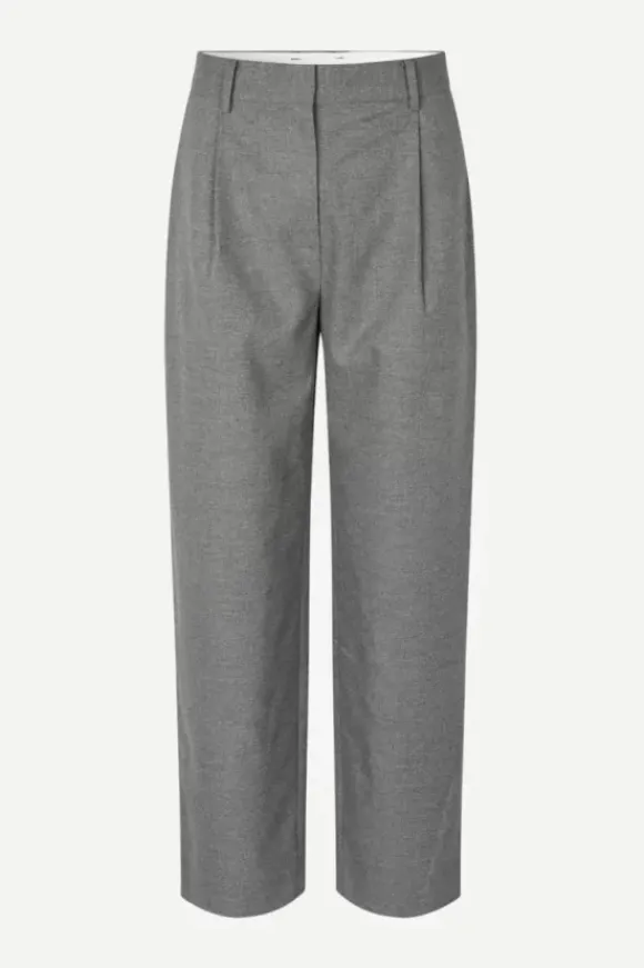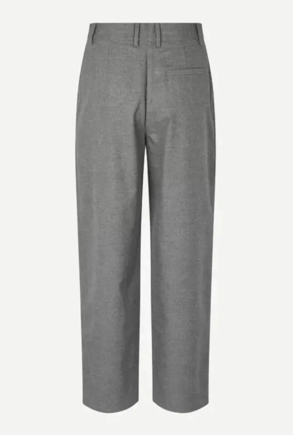 Samsoe&Samsoen meleeratun harmaat suorat housut, jotka voit yhdistää bleiserin tai vaikkapa pehmoisen neuleen kanssa. Siististi korkkareiden tai rennommin vaikkapa UGGin tennareiden kanssa.