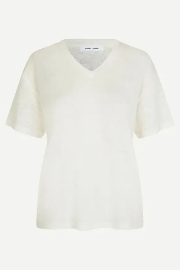 Samsoen kiva pellavainen t-paita v-kaula-aukolla. Sävynä lämmin valkoinen.