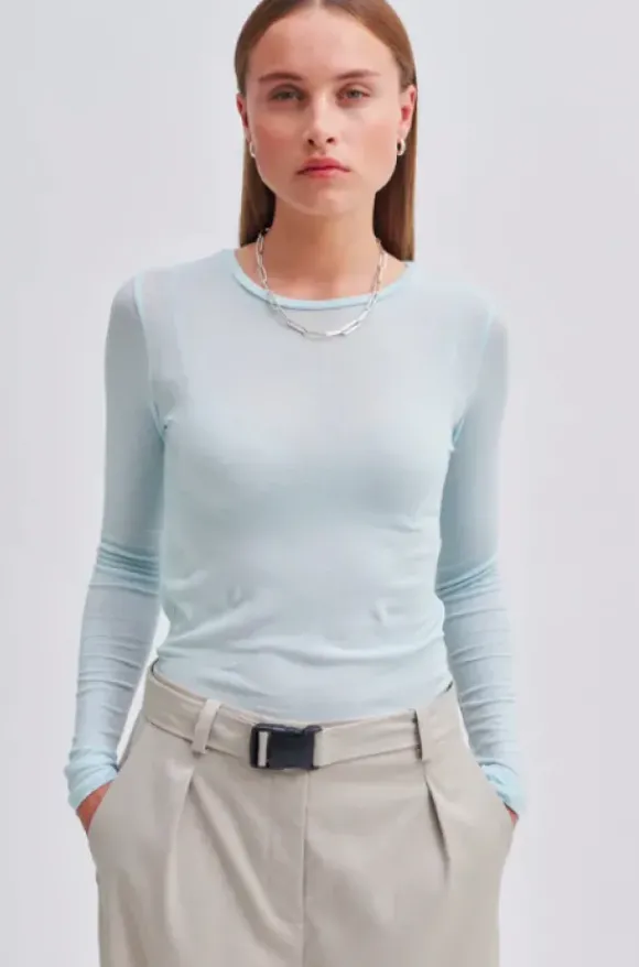 Second Femalen pitkähihainen paita miellyttävää tencelin ja merinovillan sekoitetta. Kiva istuva malli. Slim fit.