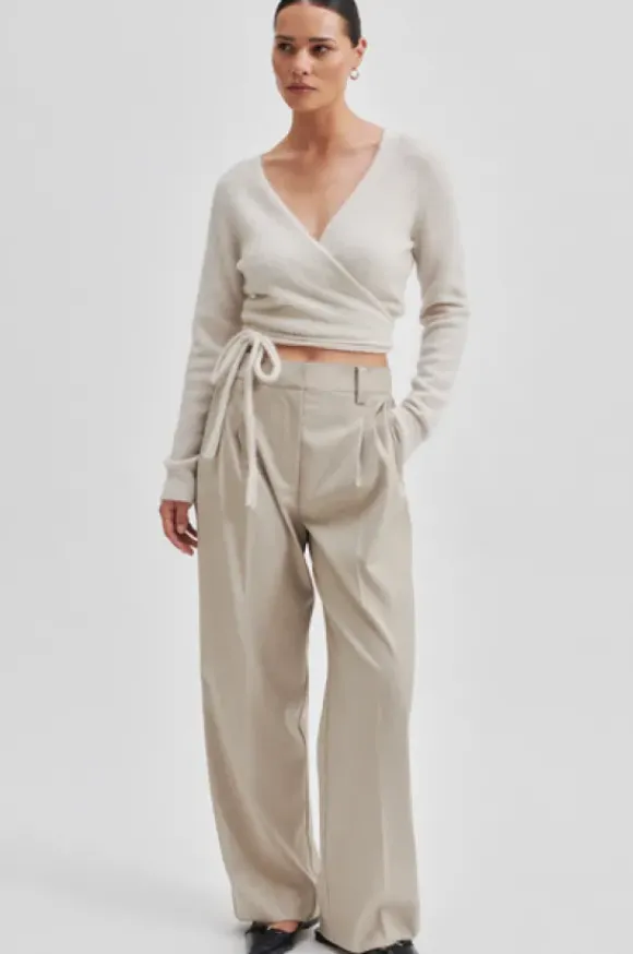 Second Femalen klassiset suorat housut, joissa mukava kuminauhavyötärö. Kivat leveät lahkeet ja keskikorkea vyötärö. Kuminauha vyötärössä selkäpuolella. Edessä taskut.