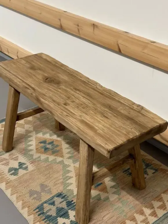 Ihana natural-sävyinen lyhyt, leveä penkki kauniilla, eläväisellä pinnalla. Varaistuimeksi, vaatteiden väliaikaissäilöksi, sängyn päätyyn,… Rosoisista puuhuonekaluistamme syntyy luonnollinen ilme kotiisi!