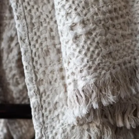 Monti is a beautiful beige blanket with a waffle structure. The blanket is a mix of 80% cotton and 20% linen, which makes it extremely soft and provides just the right amount of warmth. The Monti blanket has decorative fringes and is just as beautiful on the sofa as on the bed.