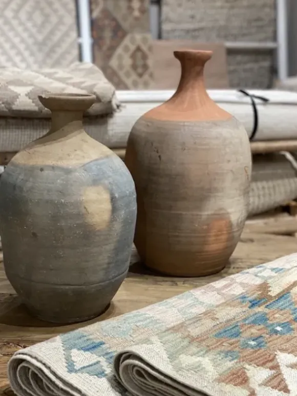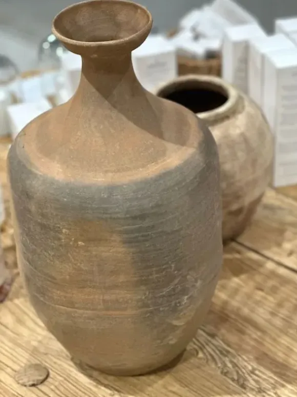 Add some structure and patina in your home with our vintage series called ANTIK. With different designs and shapes to choose from, this series will complement any interior style. Handmade from clay and left unglazed, each bottle is unique. Please note that due to the unglazed nature of the product, the bottles are not 100% waterproof, and we therefore recommend to use a saucer.