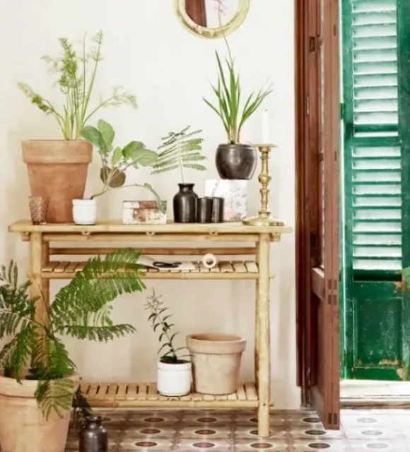Tine K Homen monikäyttöinen bambuinen sivupöytä. Pöytä toimii lisätasona keittiössä, ruokailuhuoneessa, kotitoimistolla tai terassilla. Voit asetella sille ihanimmat viherkasvisi. Alahyllyllä voit säilyttää esim. lehtiä tai pieniä koreja. Sisä- ja ulkokäyttöön sopiva.