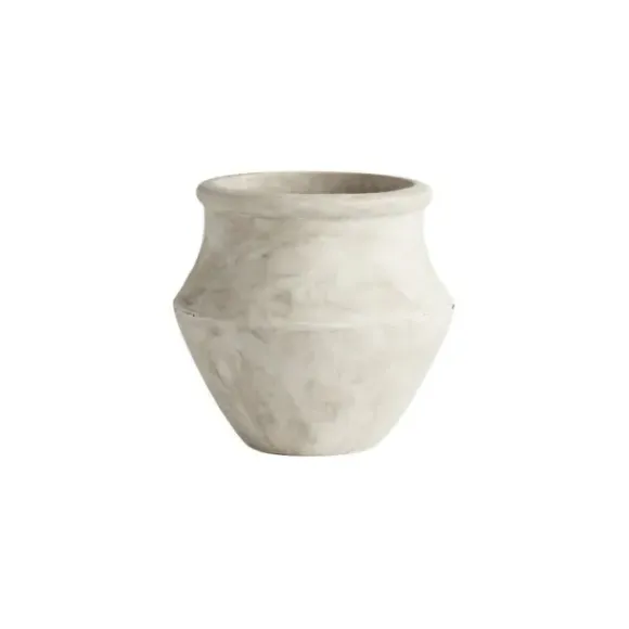Tine K Homen pienempi valkoiseksi kalkittu saviruukku koristeruukuksi kodin istutuksille ja heinille <3 Tätä upeaa ruukkua on kolmea kokoa, joista pienimmän halkaisija on 24cm ja korkeus 20cm.