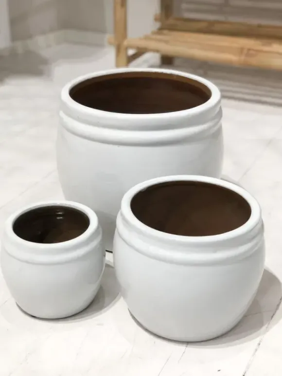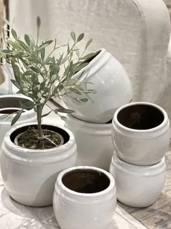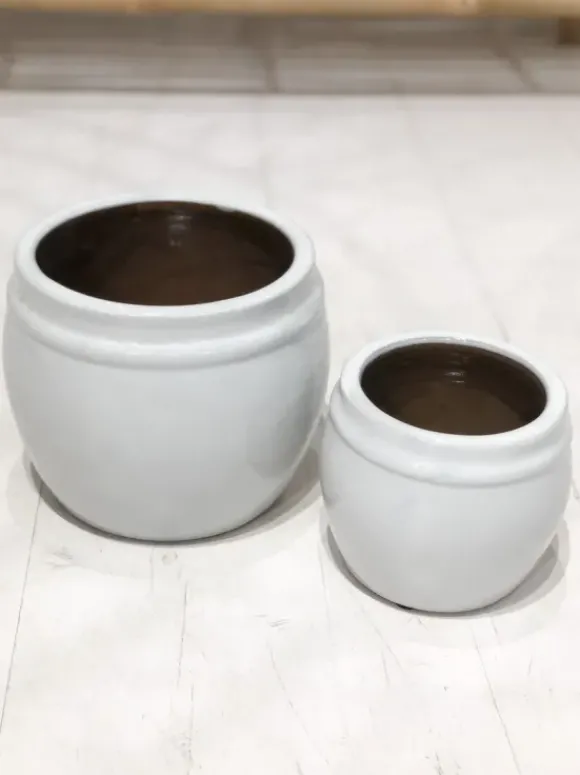 Tine K Homen ikivihreät ja iki-ihanat lasitetut ruukut pihalle, parvekkeelle, keittiöön… Useita kokoja ja kahta eri väriä. Murrettu valkoinen ja murrettu musta.