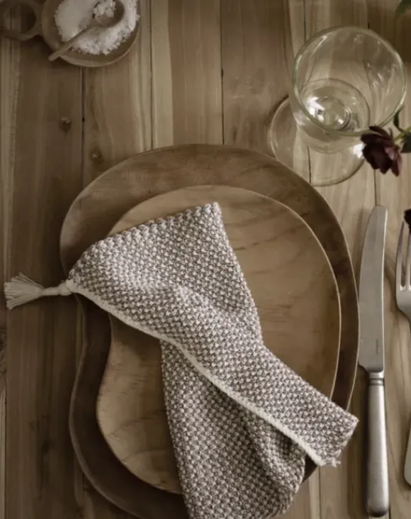 Tine K Homen kauniit, puuvillaiset neulotut tiskirätit, joissa tasseli kulmassa. Kivaa syksyistä tunnelmaa keittiöön! Testaa käyttää myös kattauksissa servetteinä!