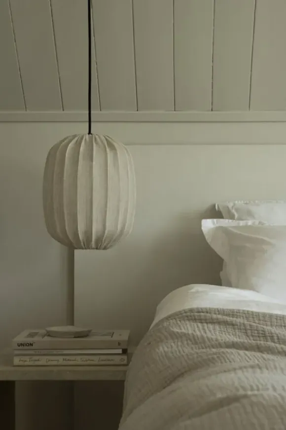 Kaunis kattovalaisin, jossa metallikehikko ja pellavakangas. Kankaan sävynä nature. Valo hohtaa kauniisti pellavakankaan läpi luoden eläväisen ilmeen. Prisma 45 sopii täydellisesti suuren keittiönpöydän yläpuolelle, olohuoneen pöydän päälle tai ryhmäksi sarjan muiden valaisimien kanssa.