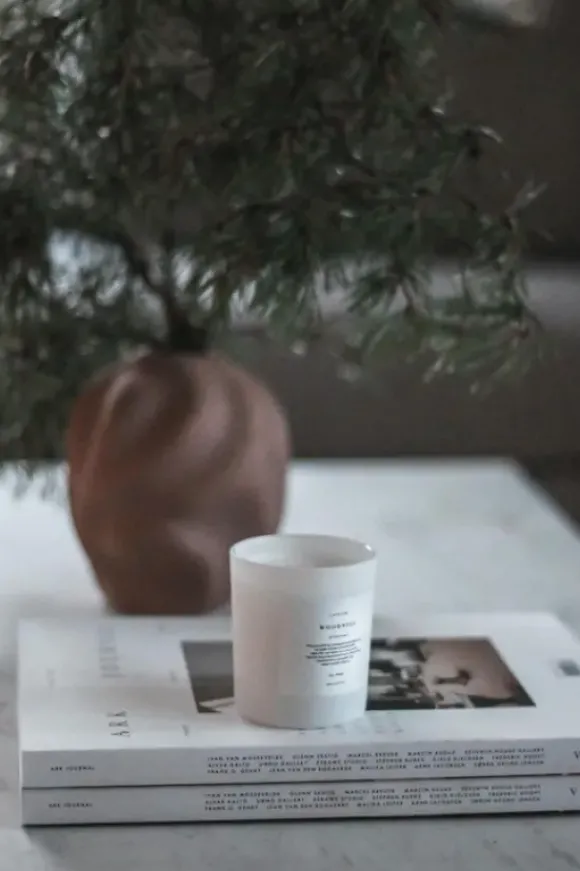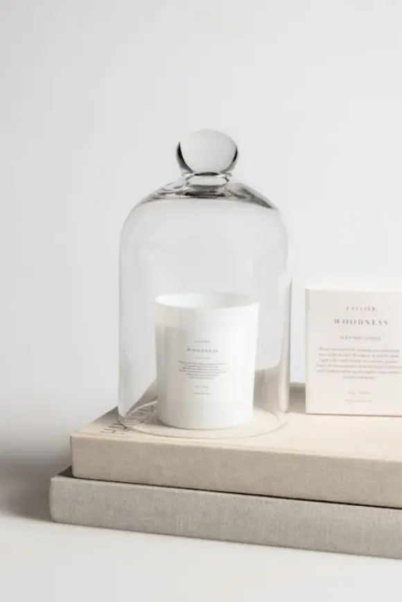 Ensiluokkaisesta vahasta Suomessa valmistettu Vegaaninen Lavliér Woodness -tuoksukynttilä.