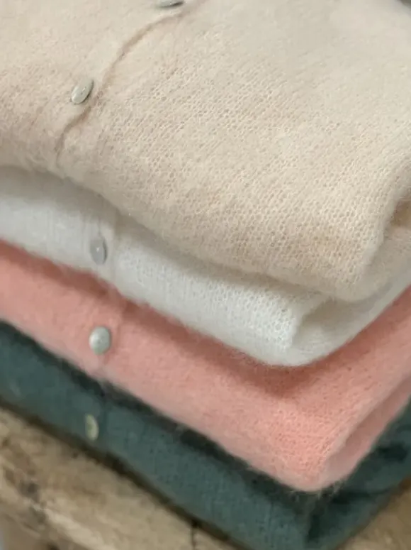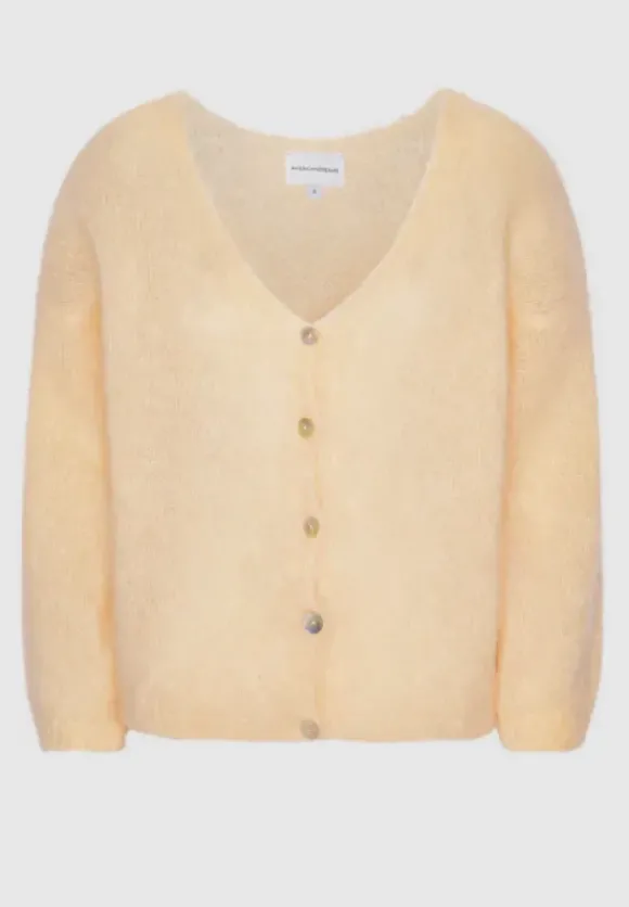 Americandreamsin Cornelia neuletakki sopii loistavasti sekä mekon että housujen kanssa. V-kaula-aukko ja napitus edessä. Tämä klassinen neuletakki on kapselivaatekaapin perusvaate.