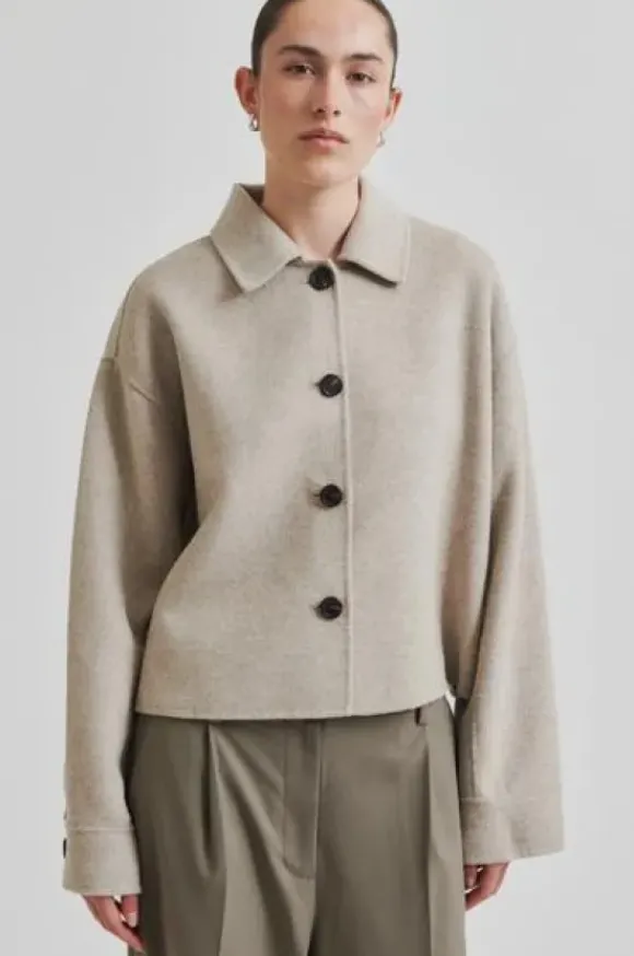 Second Femalen kaunis vuoriton lyhyt villakangastakki välikauteen. Kaunis boxy-mallinen takki kauluksilla ja yksinkertaisella napituksella. Hihansuissa napit tuomassa ilmettä.