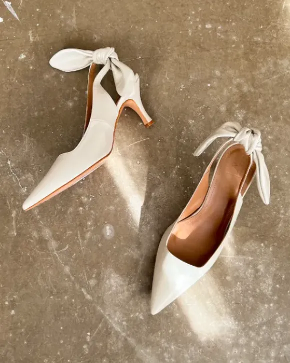 Flatteredin superkauniit nahkaiset korkkarit, joissa kapea kärki ja katseenvagitsijana kaunis rusetti takaosassa. Rusetin voit halutessasi irrottaa.