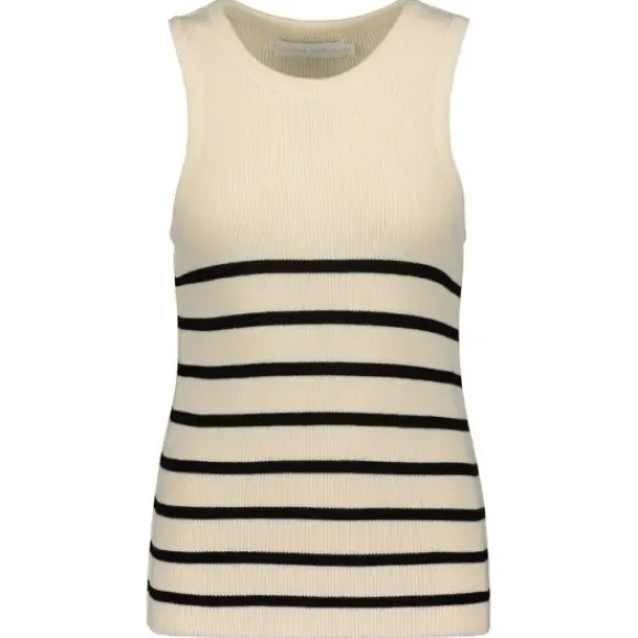 Gauhar Helsingin puuvillainen neuletoppi sopii ihanasti jakun tai farkkutakin alle. Kesällä ihana sellaisenaan. Kiva slim fit malli. Luomupuuvillaa. Mustia raitoja off-white pohjalla.