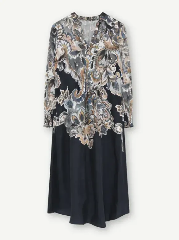 Tanskalaisen Gustavin rento Hali mekko syksyn pimeneviin iltoihin. Kaunis printtikuosi, jossa alaosan sävynä tummansininen. Midipituinen Hali mekko on kiva arjessa ja juhlassa. Materiaalina miellyttävä viskoosin ja cupron sekoite.