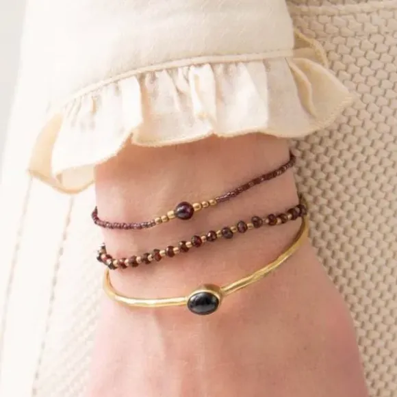 Tämä rannekoru on säädettävässä puuvillaisessa nauhassa. Pituus 16-22 cm.