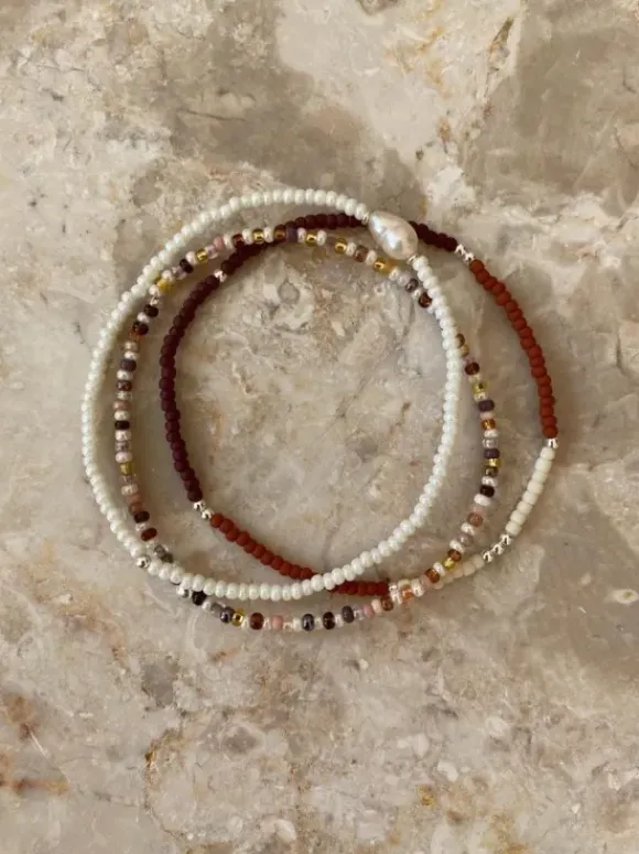 Käsityönä pienistä japanilaisista läpivärjätyistä lasihelmistä tehty rannekoru, joka on helppo yhdistää muihin rannekoruihin. Kaunis ruskea rannekoru tuo ilmettä settiin.