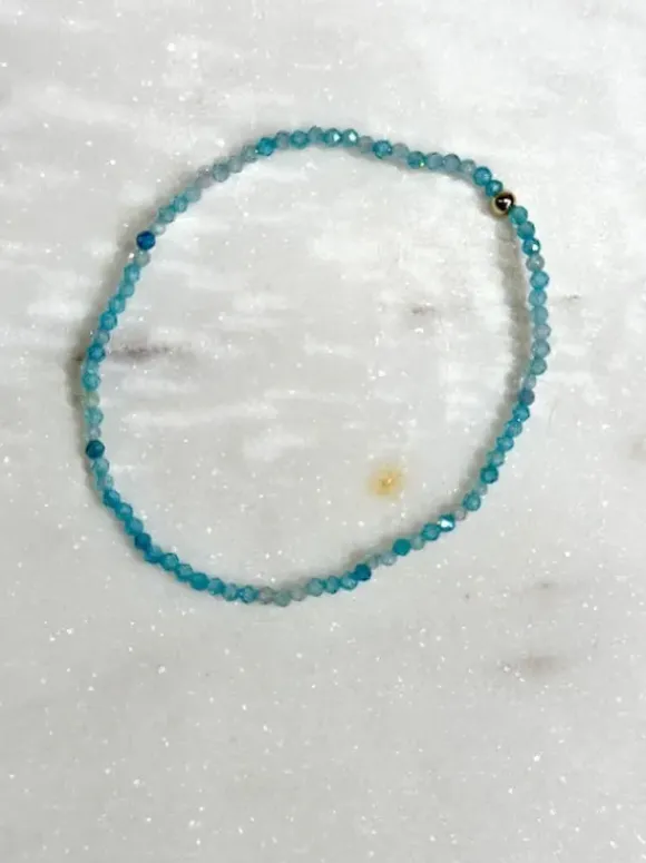 Lasihelmet ja pienet kivet pujotettu elastiseen silikonilankaan, joten korun käyttö helppoa ja se sopii moneen käteen. Pieniä pituuseroja esiintyy, joten kerro lisätietokentässä, haluatko mielummin hieman suuremman vai pienemmän korun.