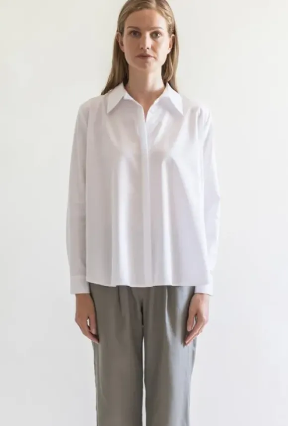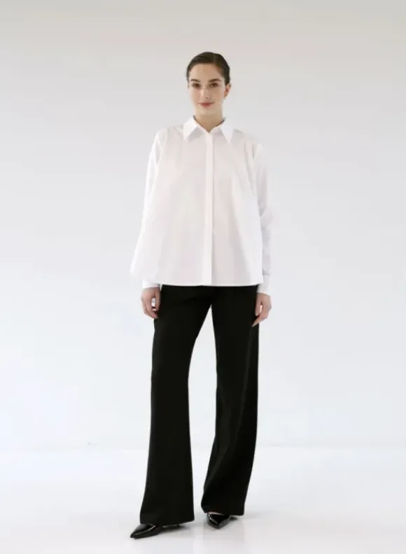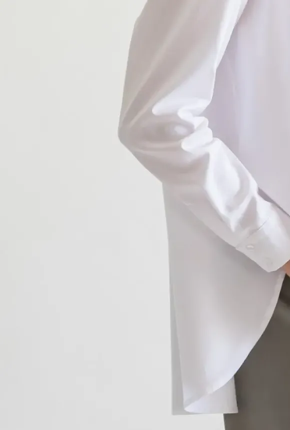 Gauhar Helsingin raikas valkoinen puuvillapaita, jossa on klassinen siluetti. Pitkät hihat, piilonappikiinnitys ja hieman pidempi helma takana. Suunniteltu jokapäiväiseen käyttöön, sillä se sopii täydellisesti farkkujen, housujen tai suosikkihameesi kanssa.