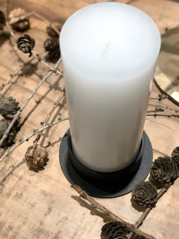 KunstIndustrien valkoinen metallinen kynttilänjalka kaikille 7 cm paksuisille kynttilöille. Tämä vankka, metallinen kynttilänjalka pitää kynttilän turvallisesti pystyssä.