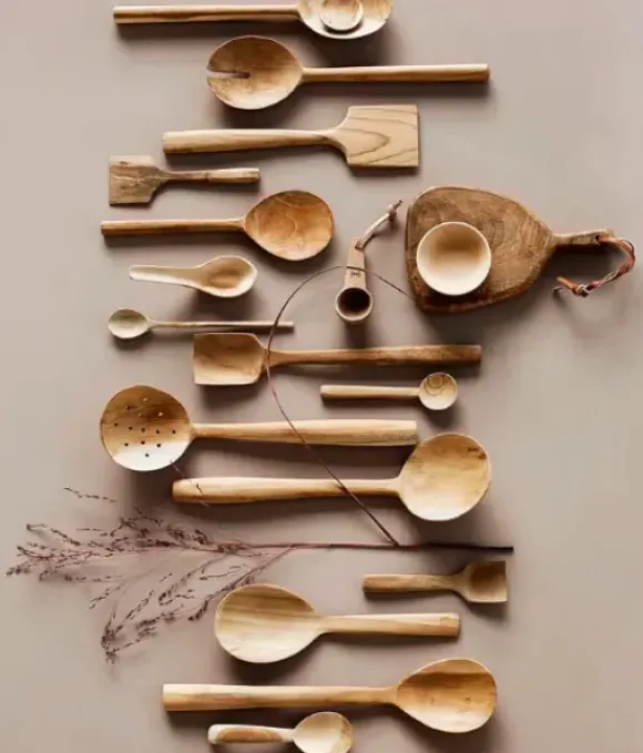 Kolmen kauniin puulusikan setti. Lusikat ovat keskenään erilaisia ja voit käyttää niitä ottimina.