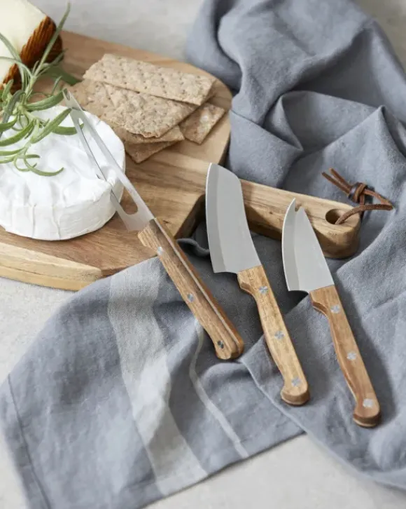 Nämä kauniit ja käytännölliset juustoveitset yhdessä kauniiden leikkuulautojen kanssa.. aivan ihana yhdistelmä! Nämä veitset on valmistettu ruostumattomasta teräksestä, ja niissä on pinnassa kaunis himmeän satiininen viimeistely. Puuosat ovat akaasiapuuta, joka tekee kokonaisuudetsa luonnollisen kauniin ja ajattoman. Veitsiä voi käyttää niin koville kuin pehmeille juustoille.