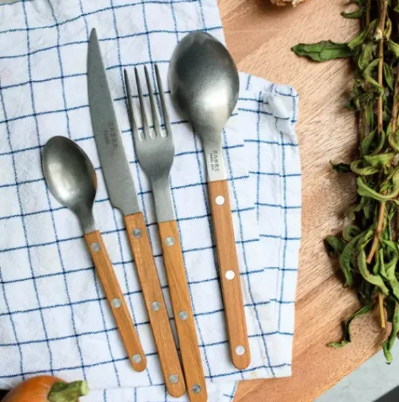 Ranskalaisen Sabren kaunis aterinsarja tiikkivarrella. Ihana ajaton malli kauniisiin kattauksiin!