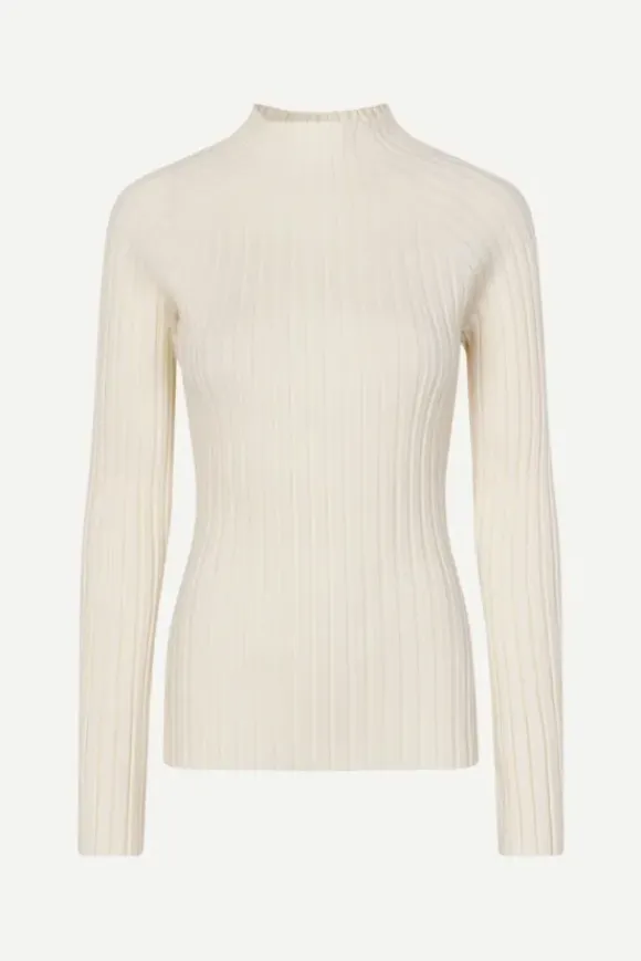 Samsoe&Samsoen pooloneule matalalla poolokauluksella. Slim fit malli, joka on helppo yhdistää hameen tai housujen kanssa päivän tyylin mukaan. Mukava myös jakun alla. Materiaalina merinovillan ja kierrätetyn polyesterin sekoite.