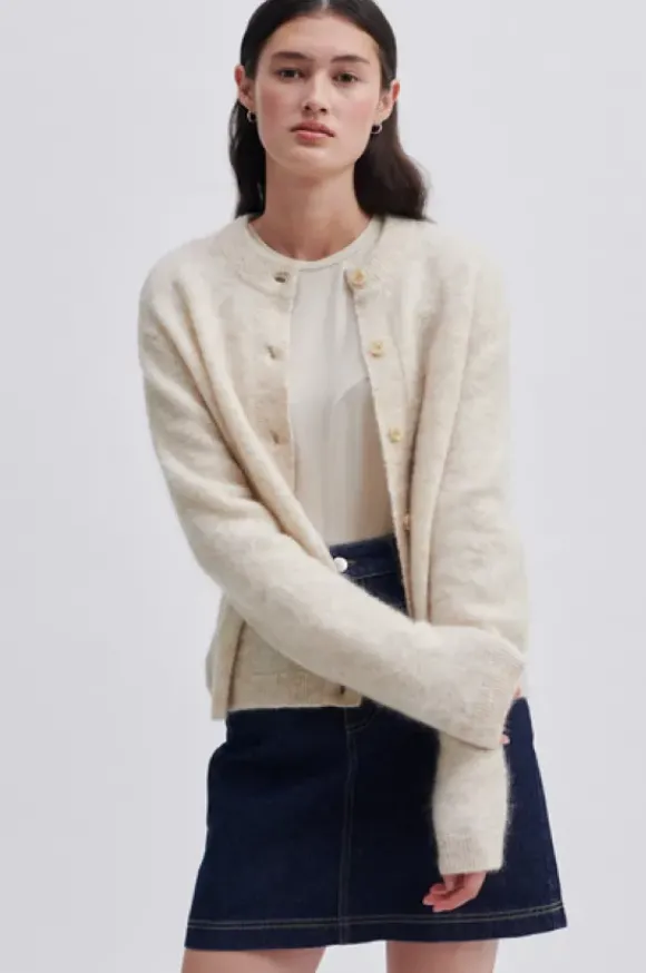 Second Femalen klassinen lyhyempi neuletakki pitkillä hihoilla ja napeilla. Ihanan pehmeä mohairin ja villan sekoitus. Yhdistele monipuolisesti farkkujen, suorien housujen tai lempparimekon kanssa.