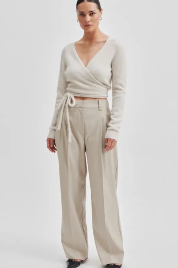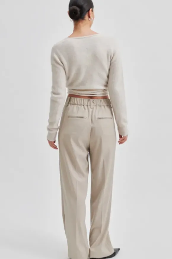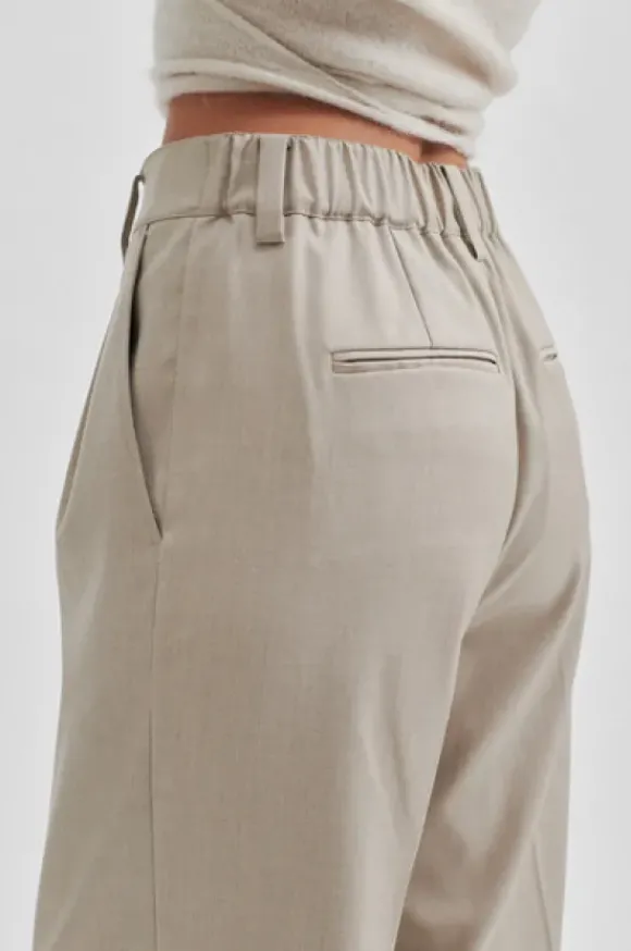 Second Femalen klassiset suorat housut, joissa mukava kuminauhavyötärö. Kivat leveät lahkeet ja keskikorkea vyötärö. Kuminauha vyötärössä selkäpuolella. Edessä taskut.
