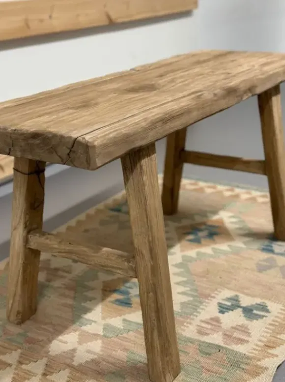 Ihana natural-sävyinen lyhyt, leveä penkki kauniilla, eläväisellä pinnalla. Varaistuimeksi, vaatteiden väliaikaissäilöksi, sängyn päätyyn,… Rosoisista puuhuonekaluistamme syntyy luonnollinen ilme kotiisi!