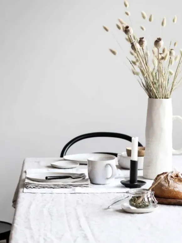 Tell Me More – pellavapöytäliina 160×330, valkoinen
