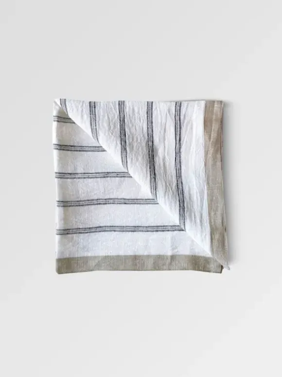 Tell Me Moren perinteinen pellavainen raitaservetti luonnolliseen tyyliin! Materiaalina eurooppalainen pesty pellava, jossa mukana ripaus puuvillaa.